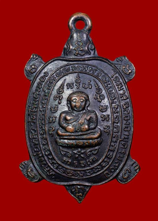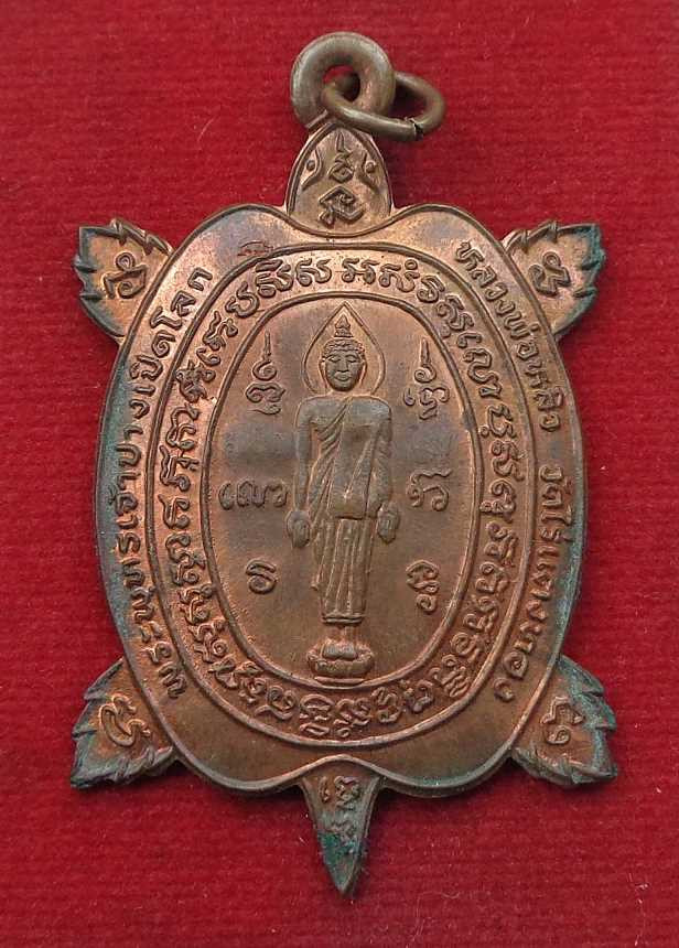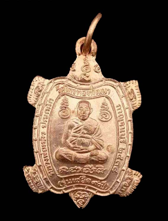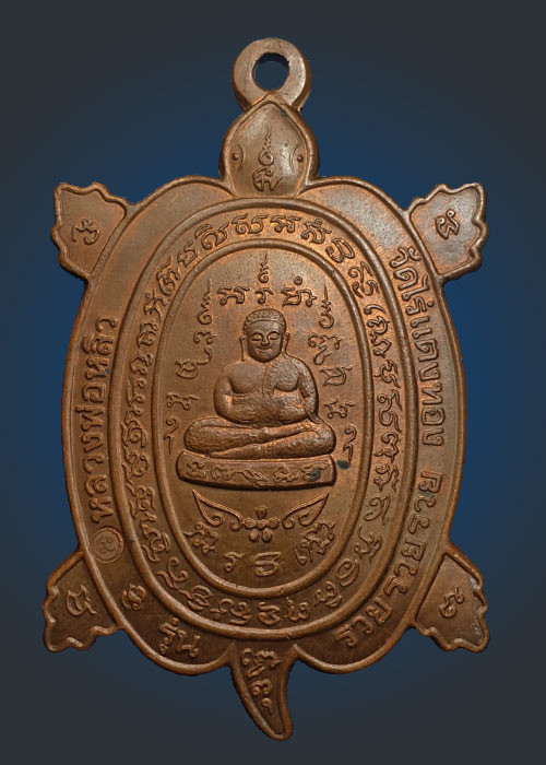 เหรียญ พญาเต่าเรือน หลวงปู่ หลิว วัดไร่เเตงทอง รุ่นสามรวย ทองเเดง |