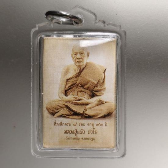 หลวงปู่แผ้ว วัดรางหมัน รูปถ่ายซีเปีย ที่ระลึกครบ๘รอบ อายุ๙๖ปี หลังปิดตา |