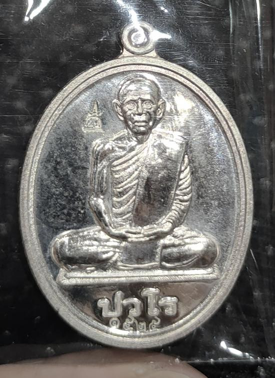 เหรียญคุ้มภัยให้รวย เนื้อเงิน หลวงปู่แผ้ว ปวโร ปี 2551 |