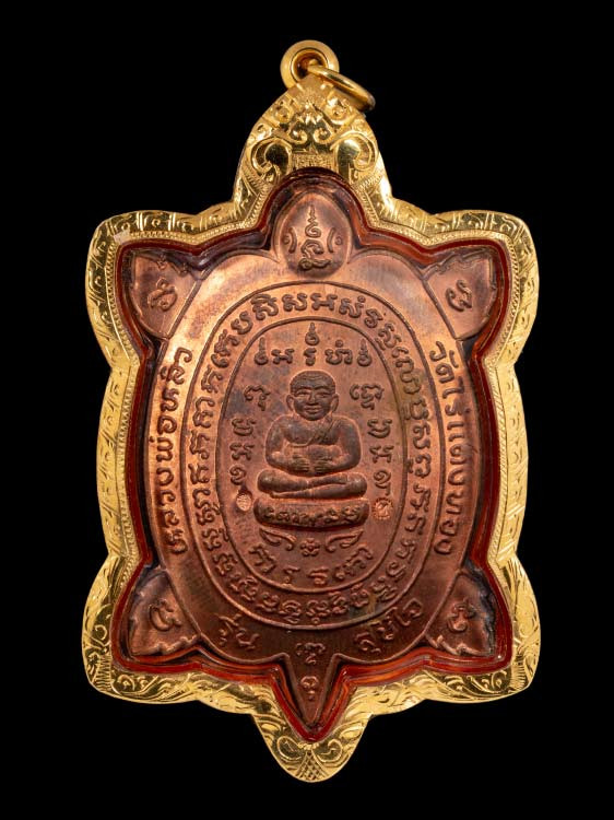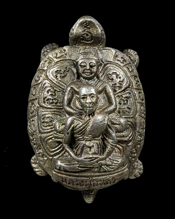 เต่าไตรมาส เนื้อเงิน หลวงปู่หลิว พร้อมเลี่ยมทอง |
