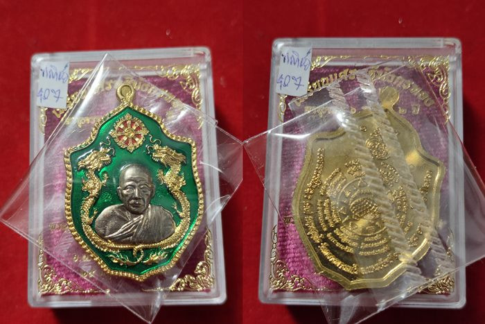 เหรียญปาดตาล หลวงปู่แผ้ว ปวโร เนื้อเงินลงยาเขียว หมายเลข 4106 |
