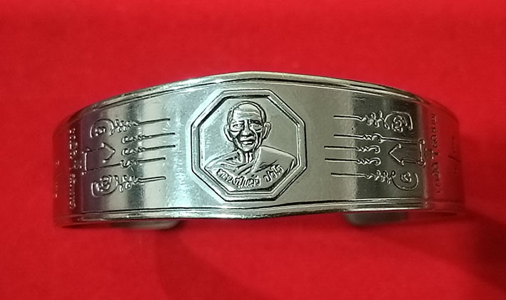 หลวงปู่แผ้ว ปวโร กำไลสแตนเลสขัดมัน นะฤาชา รวยเหลือล้น พิธีจักรพรรดิ์ตราธิราช ๑๐๘ คณาจารย์ สภาพสวย |
