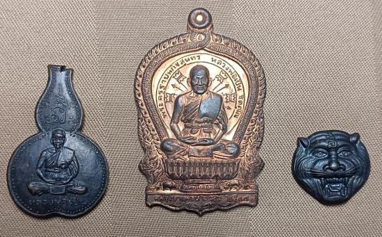 เหรียญนั่งพานเนื้อทองแดง +เหรียญเสือน้ำเต้า +เหรียญหน้าเสือ (ไหว้ครู ปี 2559) หลวงพ่อเปิ่น วัดบางพระ (เคาะเดียวครับ) |