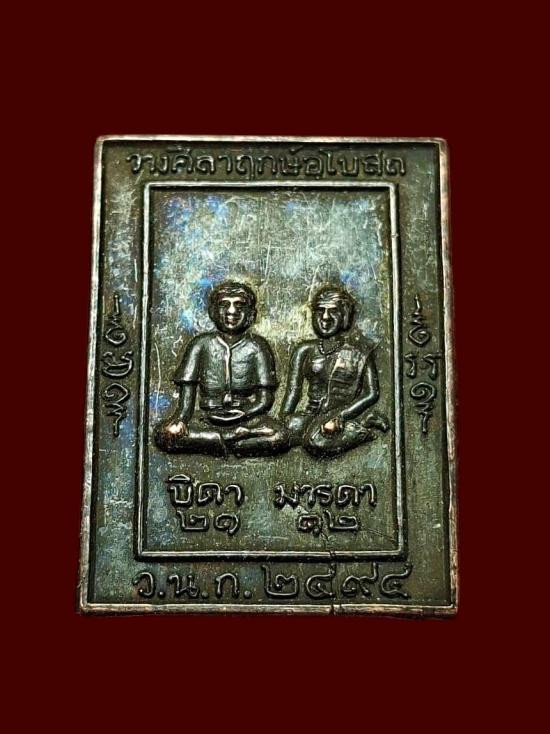 150.- เหรียญบิดา-มารดา ที่ระลึกวางศิลาฤกษ์ วัดหนองกบ ปี 2494 หลวงพ่อเงิน วัดดอนยายหอมปลุกเสก |