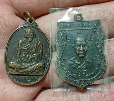หลวงปู่แผ้ว ใบขี้เหล็ก รุ่นสุดท้าย ปี 56 เนื้อทองแดง พิมพ์เล็ก ไม่มีกล่องครับ |