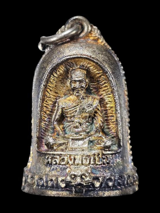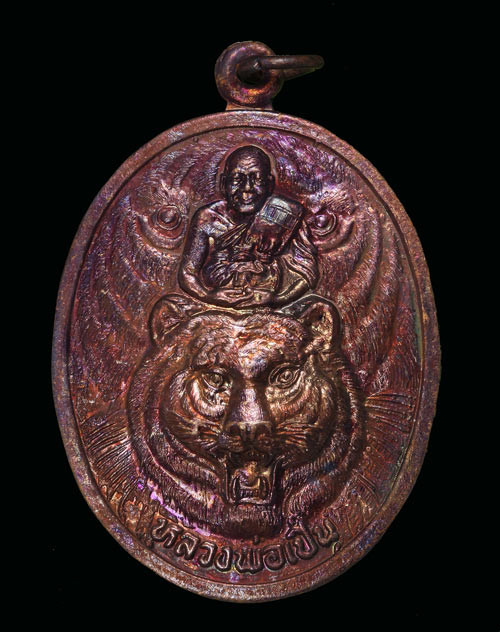 เหรียญเงาเสือ หลวงพ่อเปิ่น วัดบางพระ จ.นครปฐม ปี2543 - ผิวน้ำมันก๊าด - กล่องเดิม |