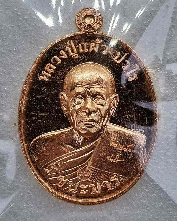 หลวงปู่แผ้ว ปวโร .. เหรียญชนะมาร วัดรางหมัน ปี 59 พร้อมกล่อง + จีวร,สายสิญจน์ |