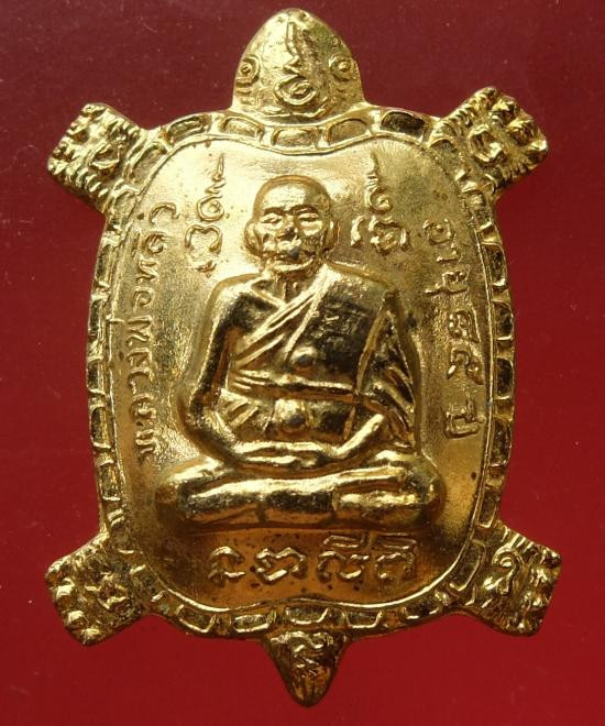 ((แดงที่100))เหรียญพญาเต่าเรือน หลวงปู่หลิว รุ่นไตรมาส พิมพ์เล็ก ปี 2536 เนื้อนวะโลหะพิ้งค์โกลด์ |