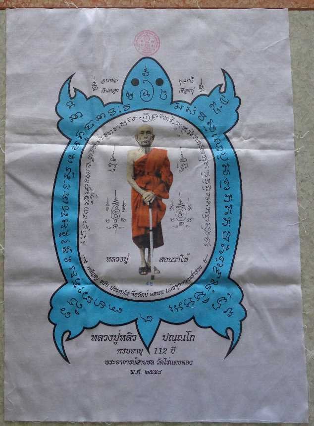 หลวงปู่หลิว ผ้ายันต์ รุ่นรวยยั่งยืน ผืนใหญ่ สีฟ้า ((((( ขนาด 48 x 68 ซม. ))))) เลข 48 สวยเดิม |