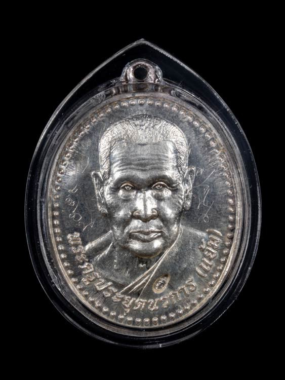 หลวงปู่แผ้ว ปวโร วัดรางหมัน รุ่นใบขี้เหล็ก ปี 54 เนื้ออัลปาก้า เดิมๆ เลี่ยมเงินสวยๆพร้อมใช้ |