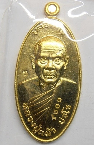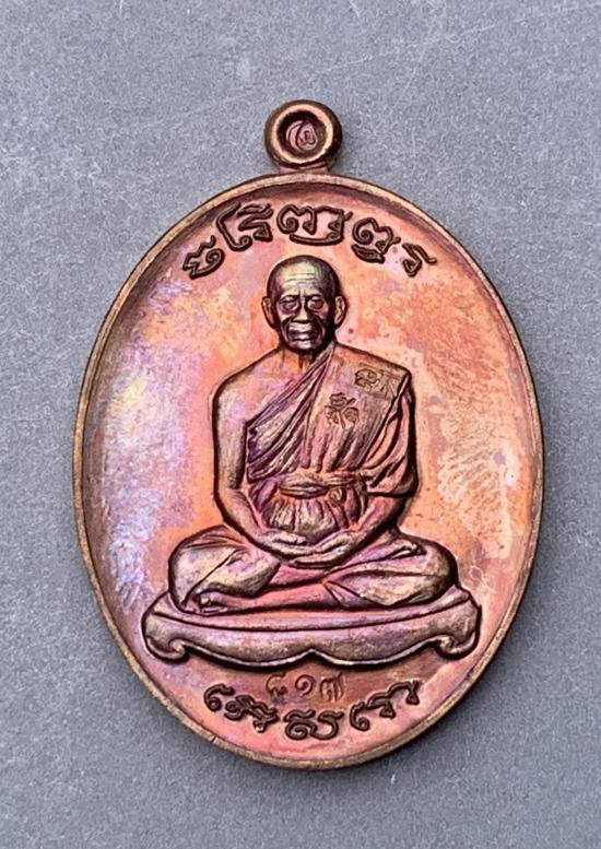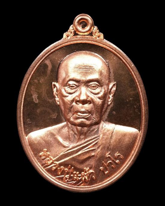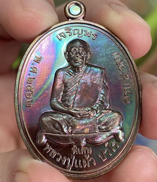 เหรียญปลดหนี้ หลวงปู่แผ้ว ปวโร หน้าหลวงปู่ทวด หลังหลวงปู่แผ้ว วัดรางหมัน ปี 2550 ผิวสวยๆ รุ้งๆ |