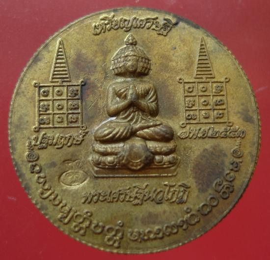 เหรียญหยดน้ำ พระร่วงโรจนฤทธิ์ วัดพระปฐมเจดีย์ เนื้อนวโลหะพ่นทรายทองไมครอน ปี 2524 จ.นครปฐม |