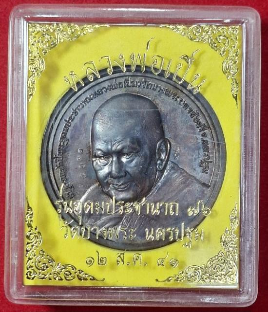 เหรียญบาตรน้ำมนต์-หลังหัวเสือ หลวงพ่อเปิ่น วัดบางพระ จ.นครปฐม ปี2541 (รุ่นอุดมประชานาถ76 สภาพสวยมาก กล่องเดิม หายาก นิยม) |