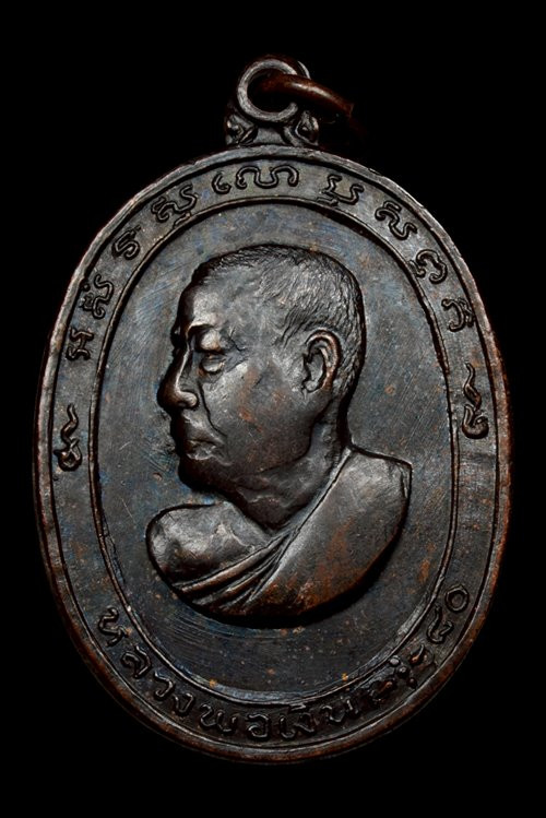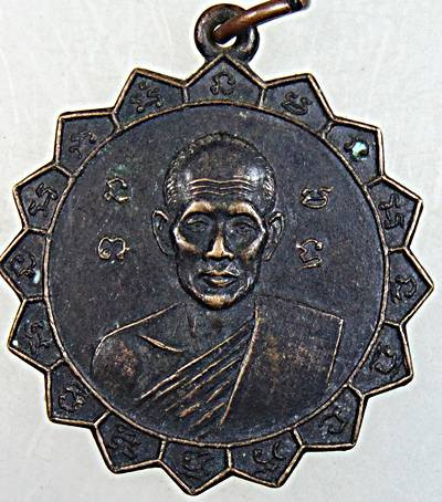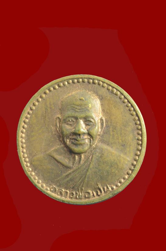 เหรียญกลมเล็กหลวงพ่อเปิ่น วัดกลางบางพระ จ.นครปฐม หลังยันต์ใบพัด |