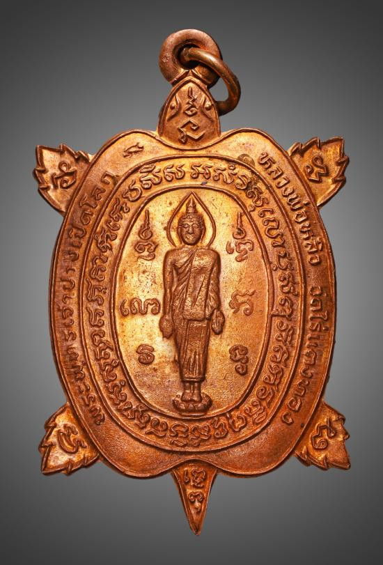 เหรียญพญาเต่าเรือน หลวงปู่หลิว วัดไร่แตงทอง รุ่นสุขใจ เนื้อทองแดง ปี 2537 |