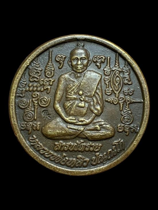 เหรียญ พญาเต่าเรือน แซยิด 92ปี หลวงปู่หลิว วัดไร่แตงทอง ปี39 เนื้อทองแดง |