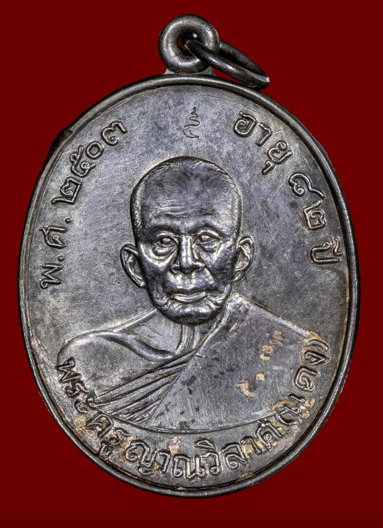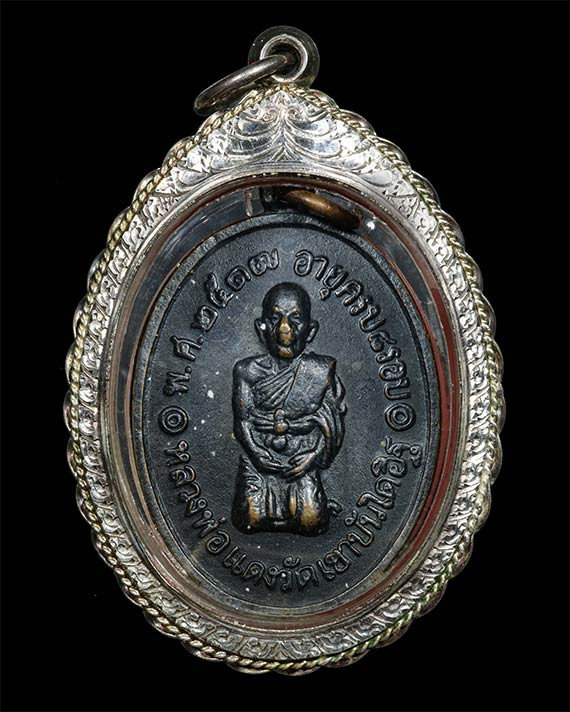 เคาะแรกแดง / เหรียญหลวงพ่อแดง วัดเขาบันไดอิฐ รุ่นเสาร์ห้า เนื้อเงิน ปี 2534 จังหวัดเพชรบุรี |