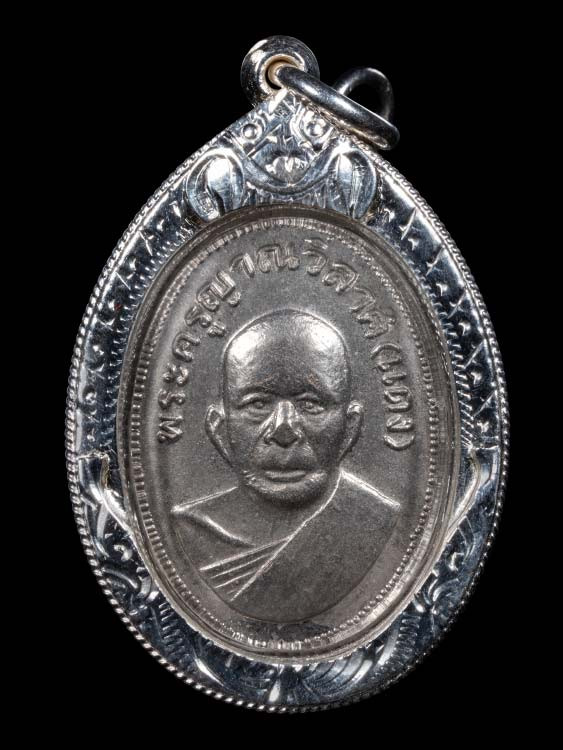 เหรียญหลวงพ่ออบ วัดถ้ำแก้ว รุ่น 3 พิมพ์ไม่มีดอกจัน เนื้อเงิน |