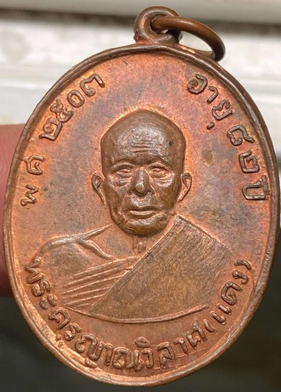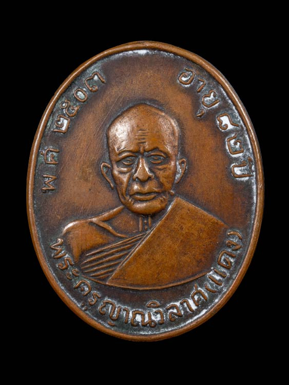 พระลงวัดใจ ได้เท่าไหร่เท่านั้น เหรียญหลวงพ่อแดง วัดเขาบันไดอิฐ รุ่น จปร. พิมพ์บาง เนื้อทองแดง ปี 2513 |