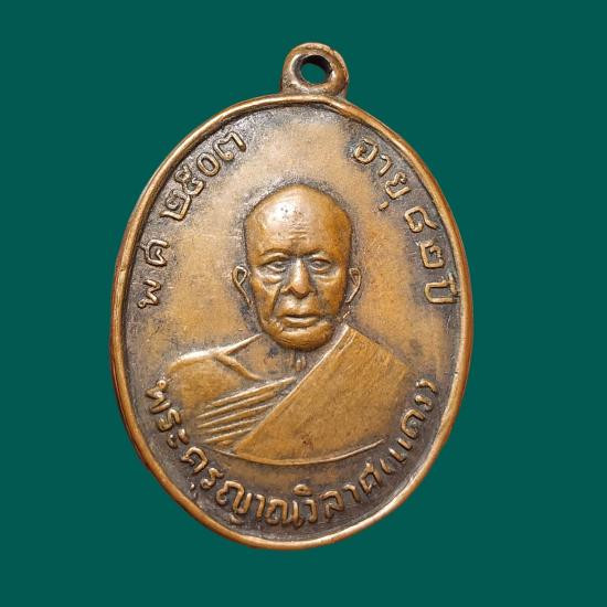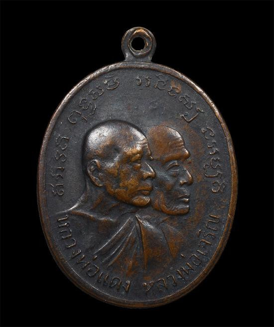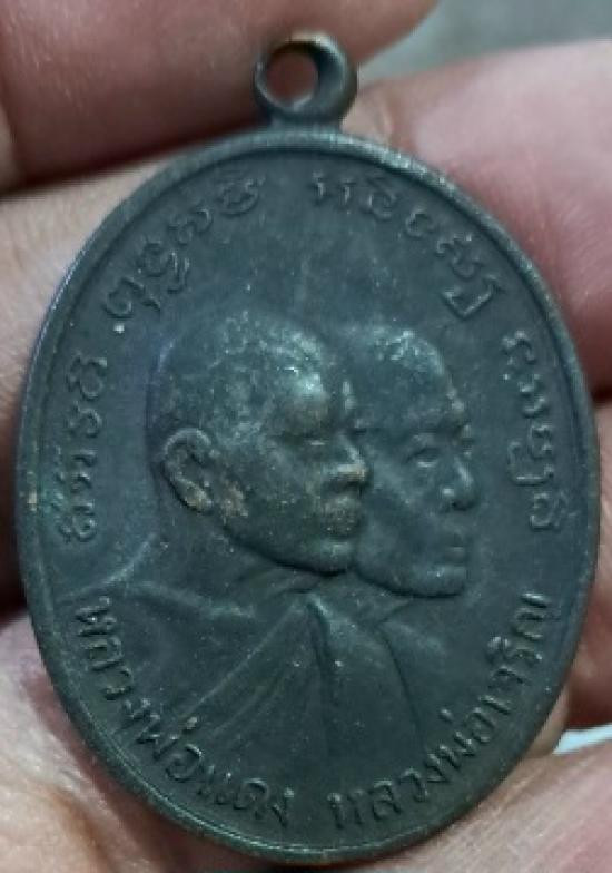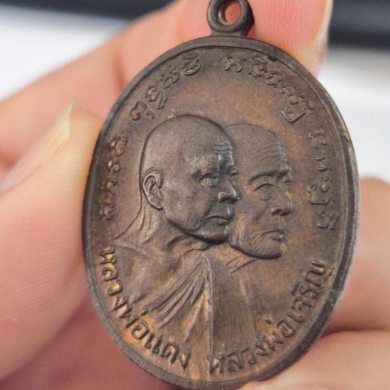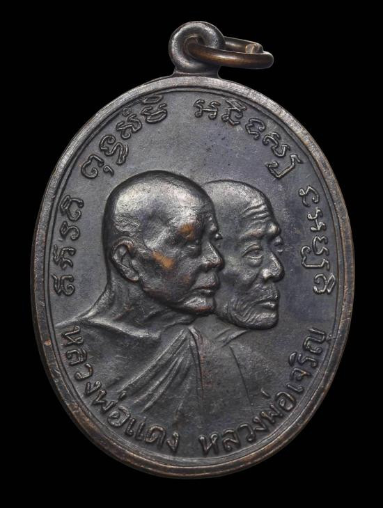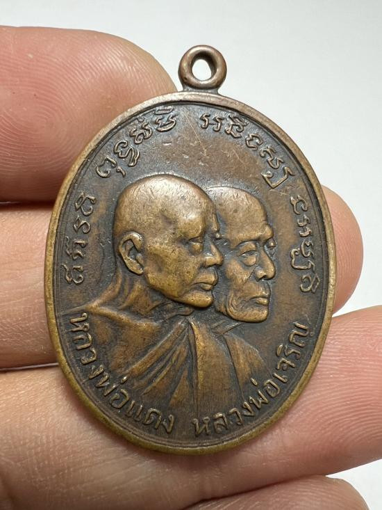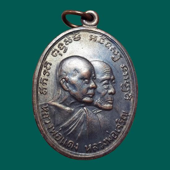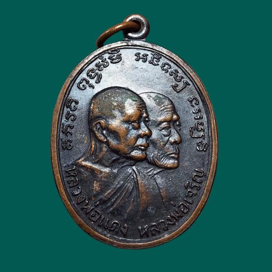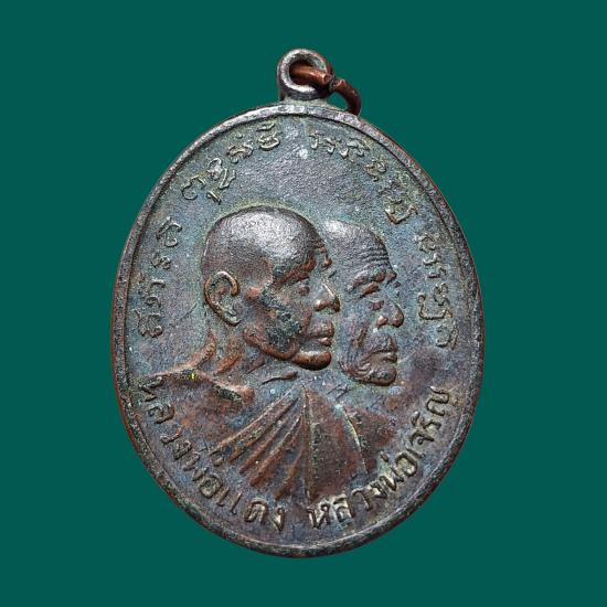 เหรียญสองพี่น้อง หลวงพ่อแดง-หลวงพ่อเจริญ บล็อกวัวลาน ปี 13 เนื้อทองแดง |