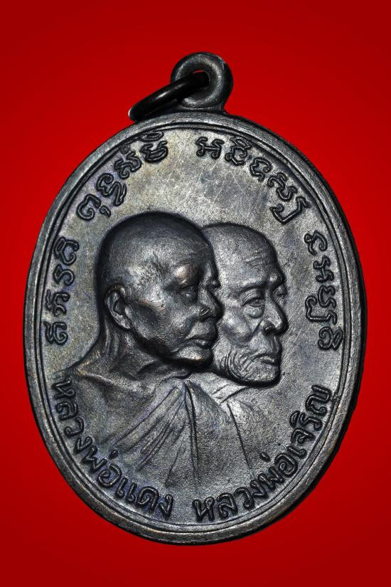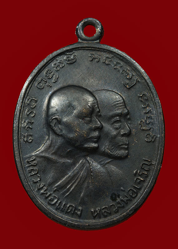 เหรียญสองพี่น้อง หลวงพ่อแดง-หลวงพ่อเจริญ บล็อกวัวลาน ปี 13 เนื้อทองแดง สวยๆ ผิวเดิมๆ |
