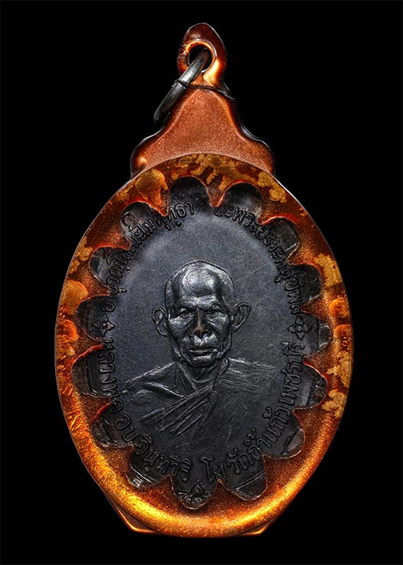 เหรียญคุกเข่า หลวงพ่อแดง เนื้อทองแดง รมดำ ออกวัดเขาบันไดอิฐ ปี 2517 สภาพผิวเดิมสวย |
