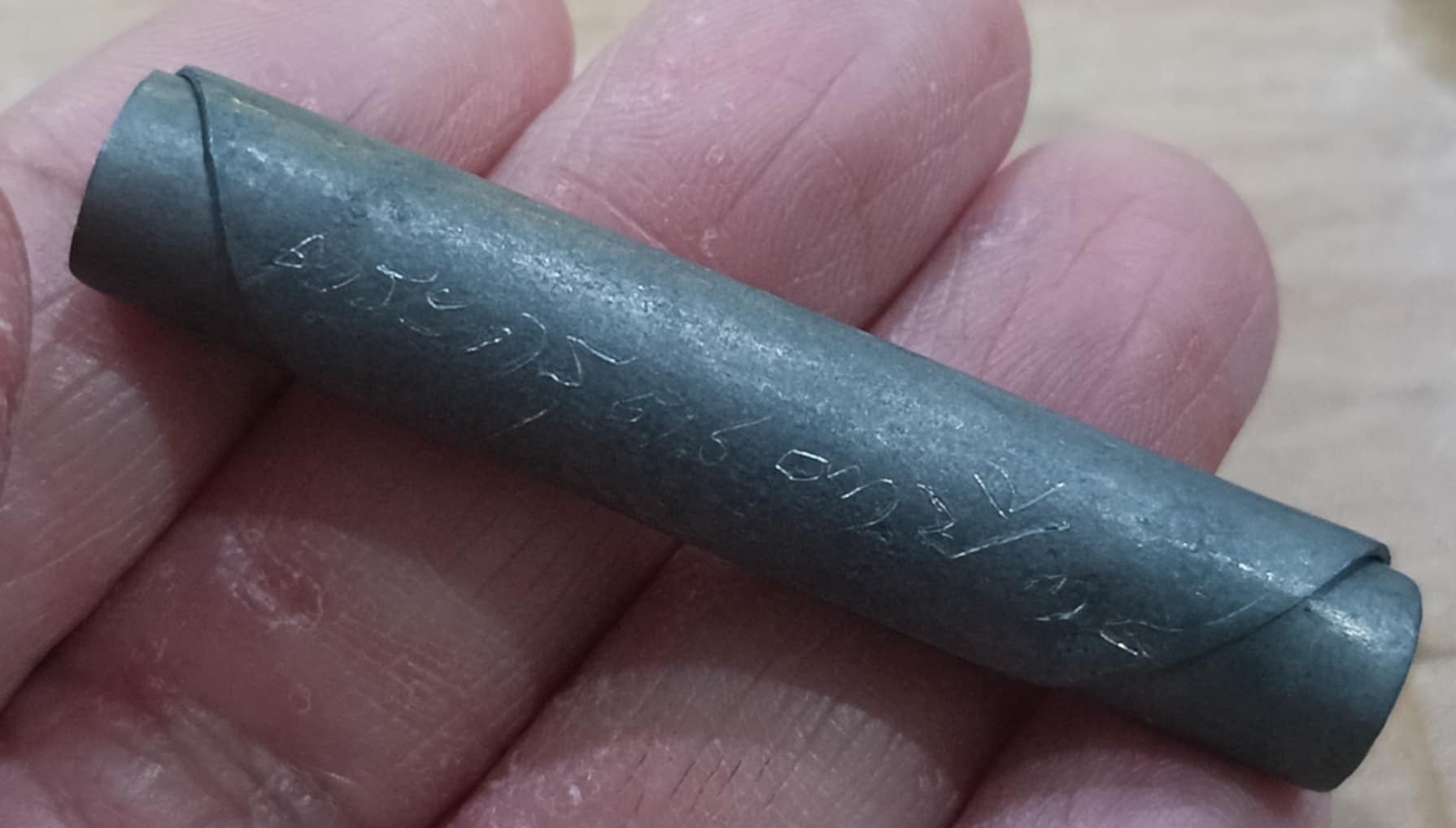 เคาะเดียวแดง**ตะกรุดสร้างเตาเผา หลวงพ่อตัด วัดชายนา ปี 2534 เนื้อตะกั่ว ยาว 2 นิ้ว |