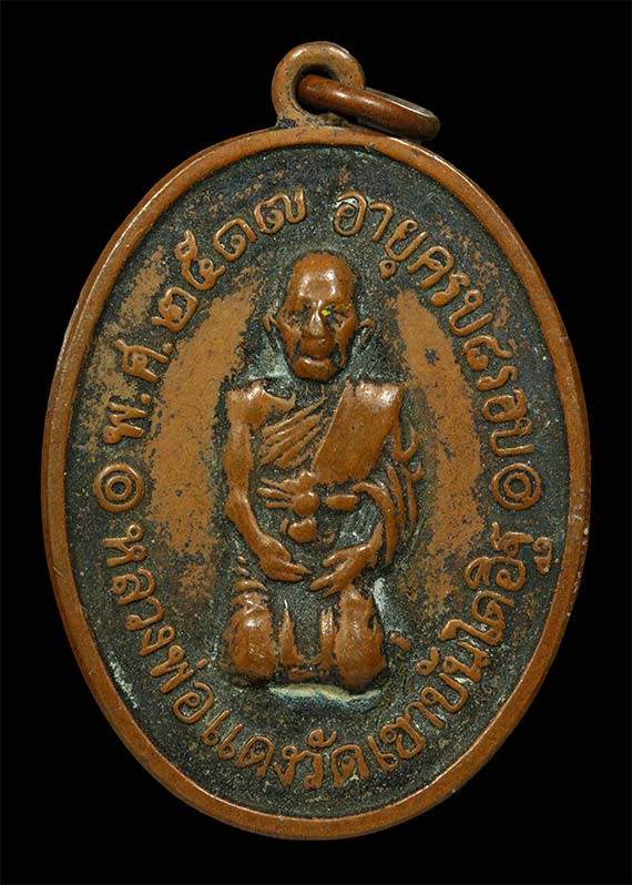 เหรียญหลวงพ่อแดง วัดเขาบันไดอิฐ จ.เพชรบุรี รุ่น4 ปี13 เนื้อทองแดง บล็อกไหล่ขีด หายากครับ |