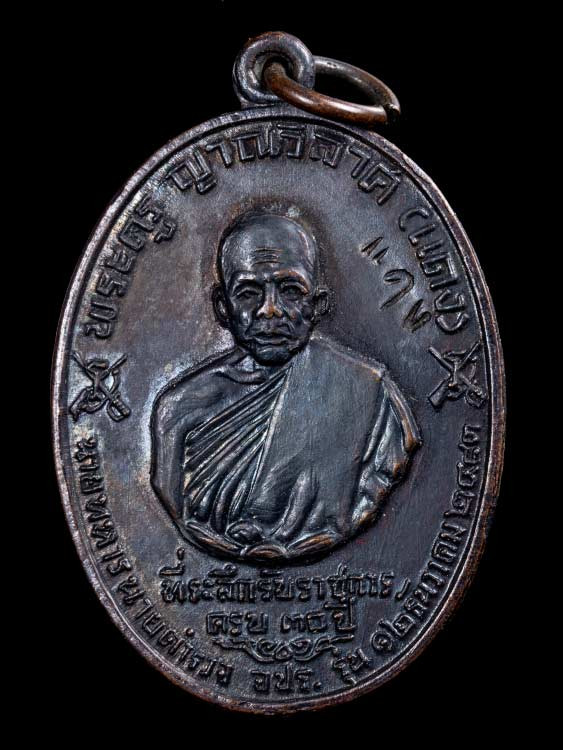 หลวงพ่อแดง รุ่นแซยิด ปี 2513 สร้างตรงปีในงานครบรอบวันคล้ายวันเกิด เนื้อทองแดงรมดำ ผิวสวยๆเดิมๆหิ้งๆ |