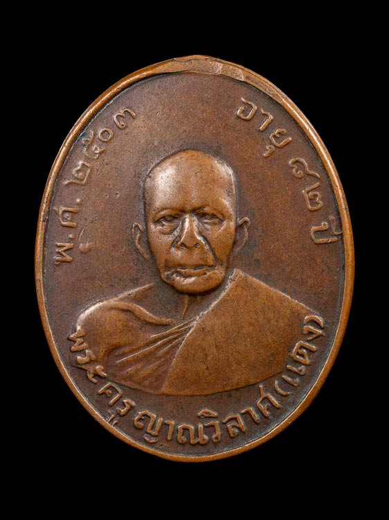 เหรียญหลวงพ่อแดง วัดเขาบันไดอิฐ รุ่น จปร. พิมพ์บาง เนื้อทองแดง ปี 2513 |