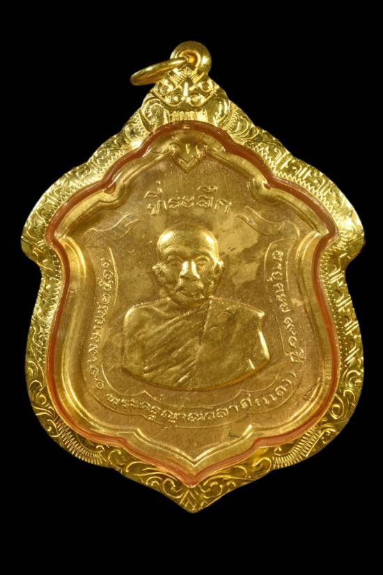 บัตรสภาพสวย เหรียญหลวงพ่อแดงคุกเข่า พิมพ์บล็อกทองคำ พร้อมบัตร |