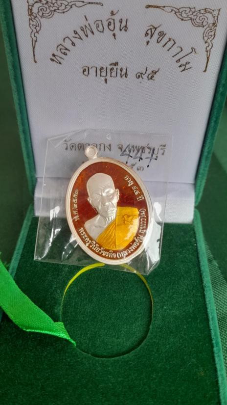 เหรียญรูปไข่ ไม่มีห่วง หลวงพ่ออุ้น วัดตาลกง ปี2550 พร้อมกล่อง |