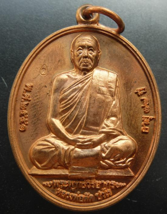 รูปหล่อรุ่นแรก หลวงพ่อตัด วัดชายนา ปี40 เนื้อทองเหลืองรมดำ สภาพดีสวยเดิมๆ มีจารด้านหลังกับใต้ฐาน |