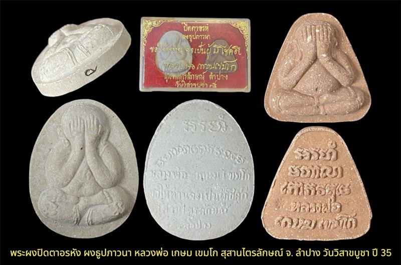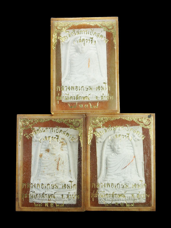 ###### พระผงเสตุวารี หลวงพ่อเกษม เขมโก ปี 2527 ยกชุด 3 องค์ กล่องเดิม สวยเดิม ###### |