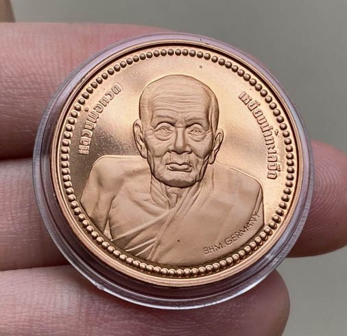เหรียญ หลวงพ่อเกษม หลัง ภปร. พิมพ์ใหญ่ เนื้อทองแดง บล็อคเงิน เคาะเดียว หายาก |