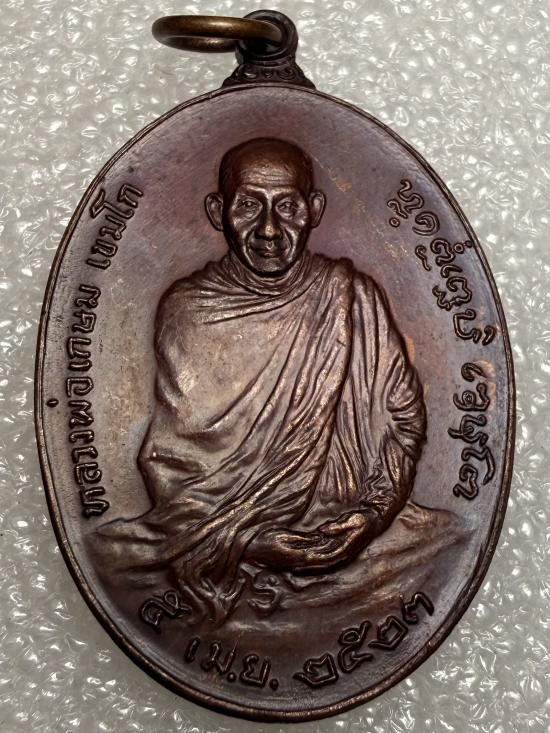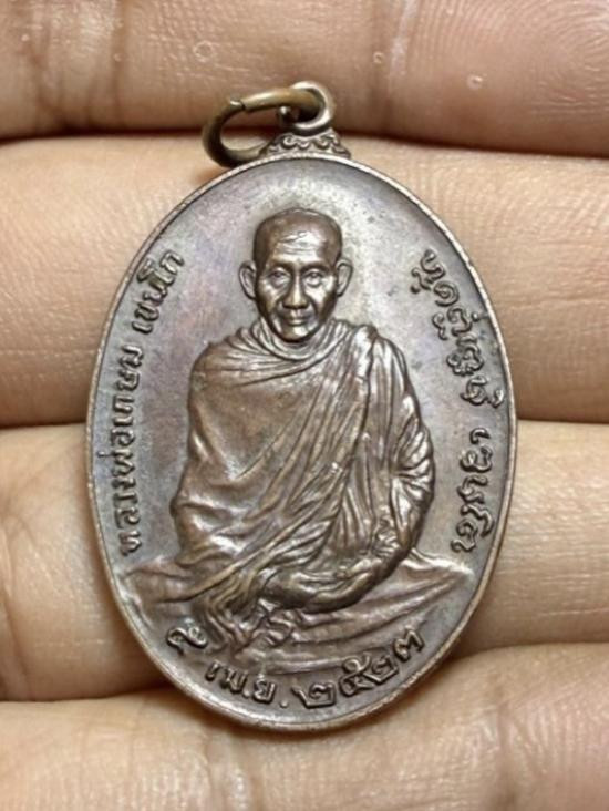เหรียญหลวงพ่อเกษม รุ่นครบ 5 รอบ เนื้อทองแดง ปี 2515 พร้อมบัตรรับรอง |