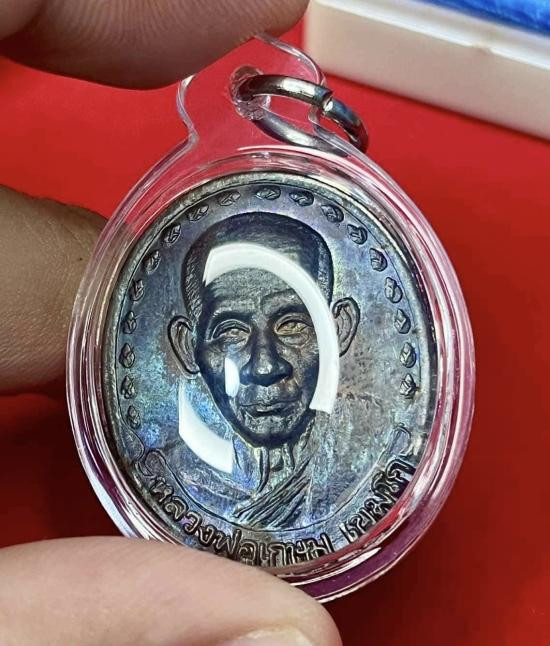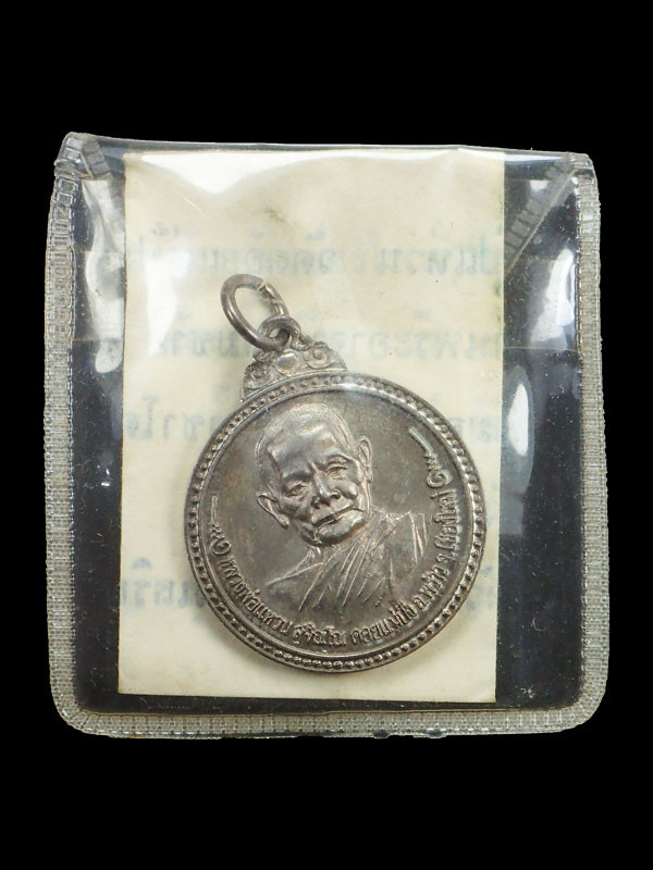 เหรียญเจ้าสัวเนื้อเงิน พิมพ์เล็ก หลวงพ่อเกษม เขมโก |