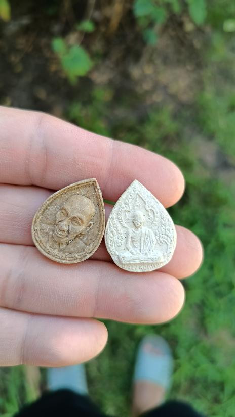พระผงหยดน้ำ หลวงพ่อเกษม เขมโก ปี 2533 หลังยันต์ นะ 3 ตัว |