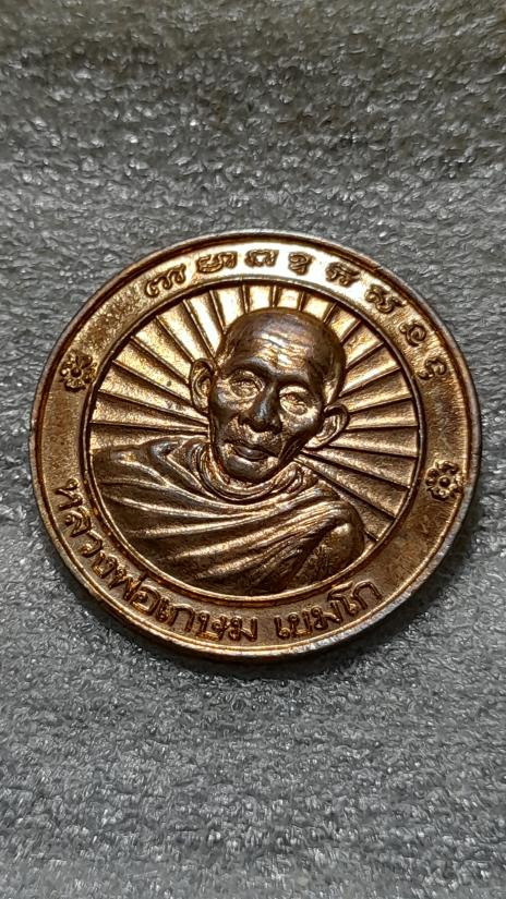หลวงพ่อเกษม เขมโก เหรียญที่ระลึกครบ 5 รอบ 60 พรรษาอุปสมบท ทองแดง ปี2536 ตอกโค๊ต มีตลับเดิม |
