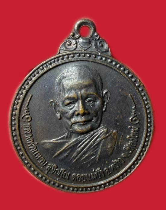เหรียญหลวงปู่แหวน สุจิณฺโณ วัดป่าเจริญธรรม เชียงใหม่ ปี2517 เนื้อทองแดง ตอกโค๊ต |