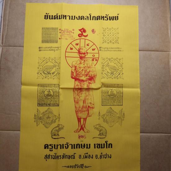 ผืนใหญ่......(ขนาด 22 X 33 นิ้ว) ผ้ายันต์มหามงคลโภคทรัพย์ หลวงพ่อเกษม เลข 1261 ..68.11.26 |