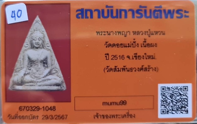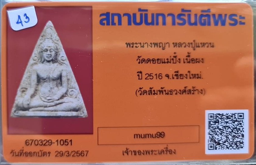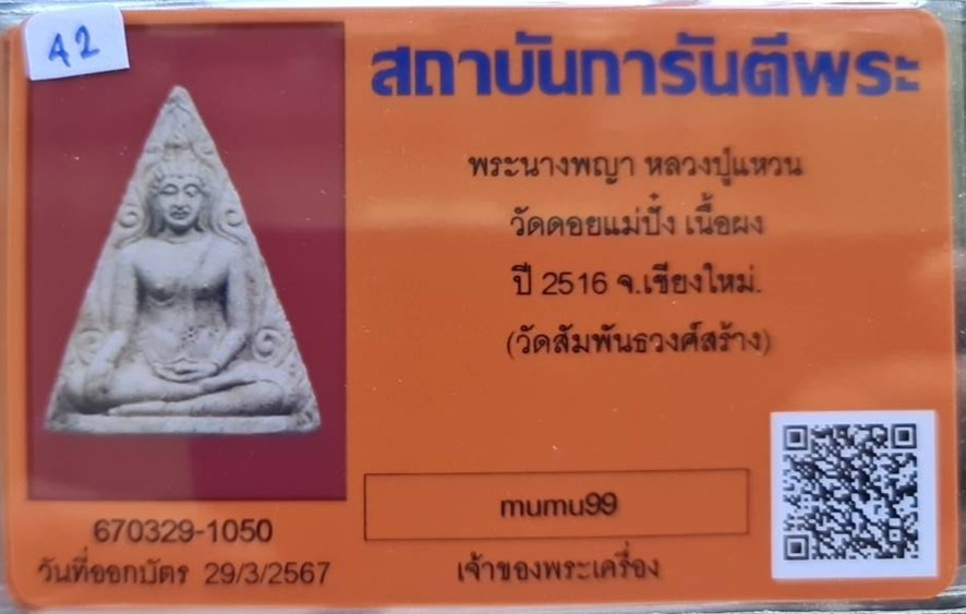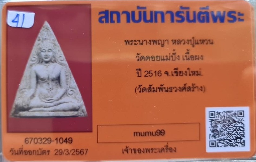 @## พระนางพญา.. ลป.แหวน วัดดอยแม่ปั๋ง จ.เชียงใหม่ (พิธีปลุกเสกใหญ่ใหญ่ วัดสัมพันธวงศ์ กทม.จัดสร้าง ) ปี2516 เนื้อผง พร้อมบัตรรับรอง สภาพสวยมาก รับประกันความแท้ตลอดชีพ พิธีปลุกเสกในวาระแรก ปี 2516 -วั |