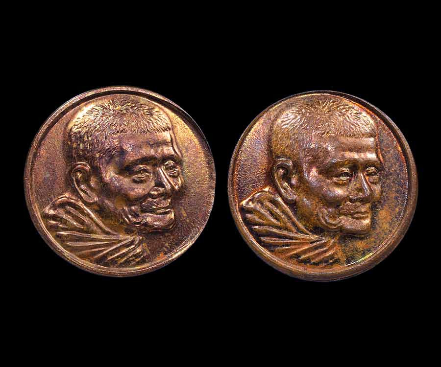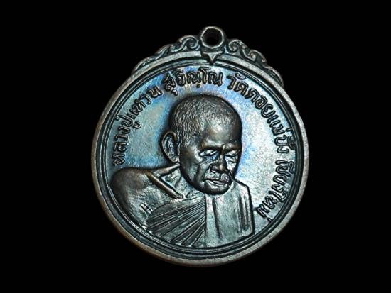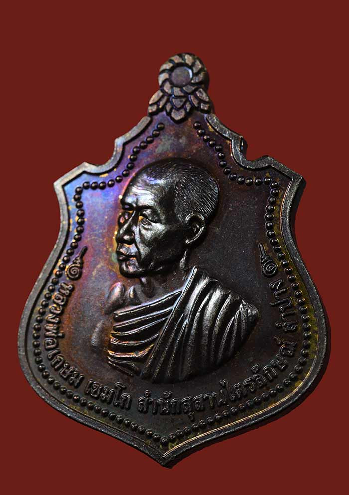 เหรียญเจดีย์ 84 หลวงปู่แหวน เนื้อทองแดงรมดำ ผิวรุ้งน้ำเงิน ตอกโค๊ตสวยมาก |