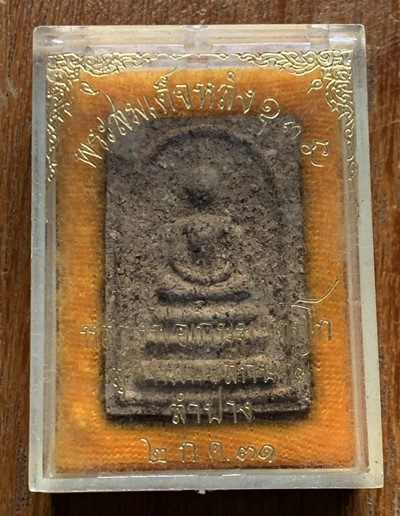 พระผงสัจจะบารมี พิมพ์ระฆัง หลวงพ่อเกษม เขมโก สุสานไตรลักษณ์ จ.ลำปาง ปี2531 (กล่องเดิม พิเศษติดจีวร หายาก) |