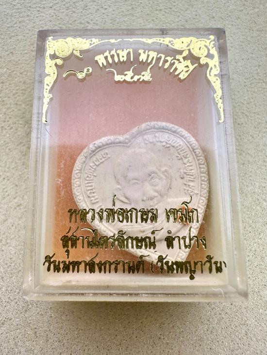 พระผงรูปหัวใจ หลวงพ่อเกษม เขมโก สุสานไตรลักษณ์ จ.ลำปาง ปี2535 (60พรรษา มหาราชินี) ด้านหน้าติดจีวร กล่องเดิม... |