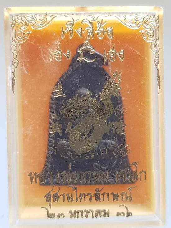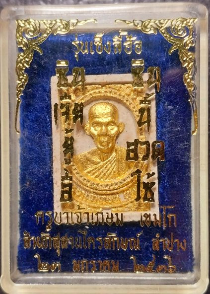 วัดใจเคาะแรก///พระผงหลวงพ่อเกษม เขมโก รุ่น เซ็งลีฮ้อ ซินเจียยู่อี่ ซินนี้ฮวดไช้ ปี 2536 กล่องเดิม ปิดทอง |