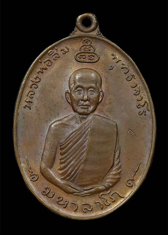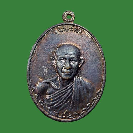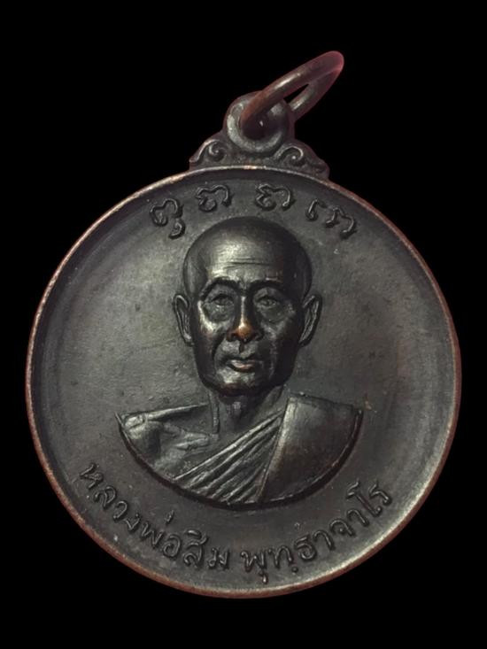 เหรียญวัดพลับพลา จ.นนทบุรี หลวงพ่อเกษม เขมโก สุสานไตรลักษณ์ จ.ลำปาง ปี 2517 เนื้อทองแดง มีวงเดือน หูติ่ง ยันต์ขีด |