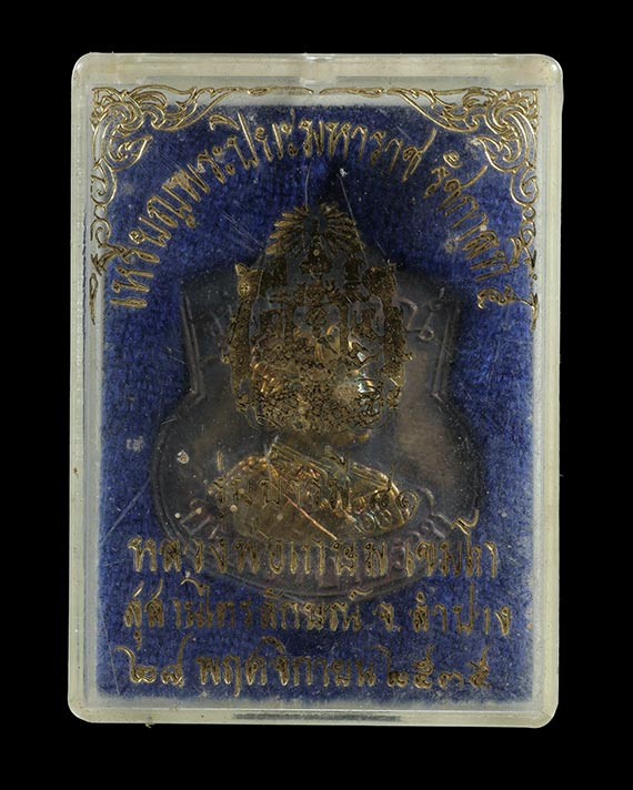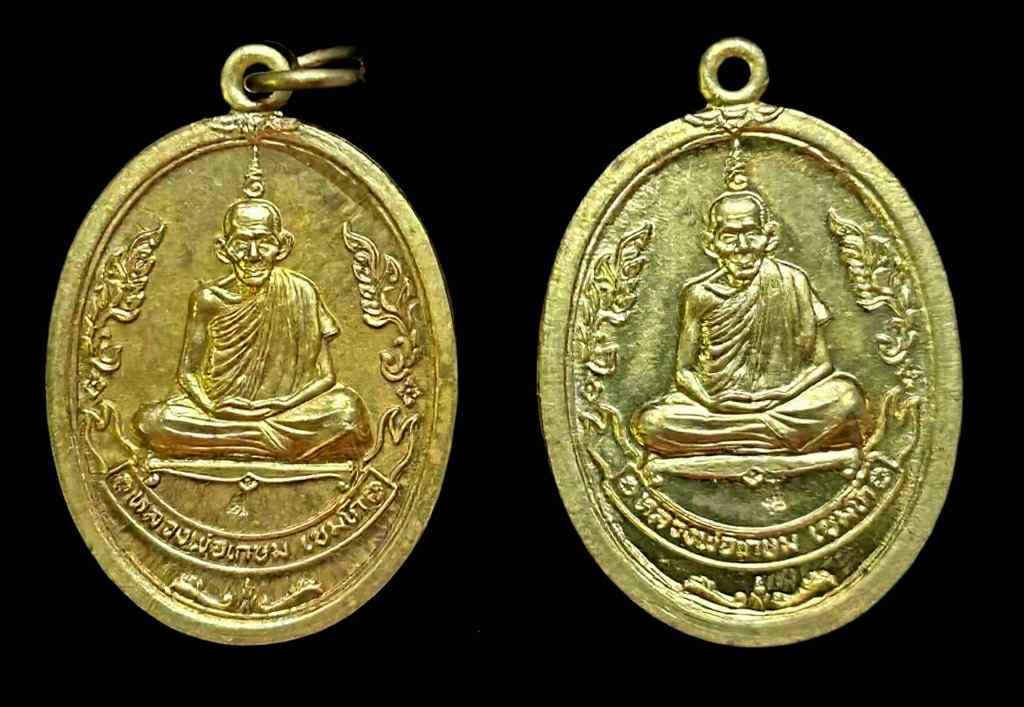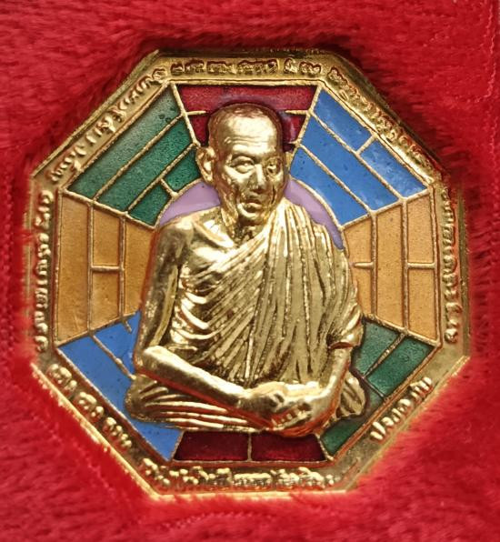 เคาะเดียว เหรียญรูปเหมือนคุ้มภัยแปดทิศ หลวงพ่อเกษม เขมโก ปี38 กะไหล่ทองลงยา พร้อมกล่องเดิม |