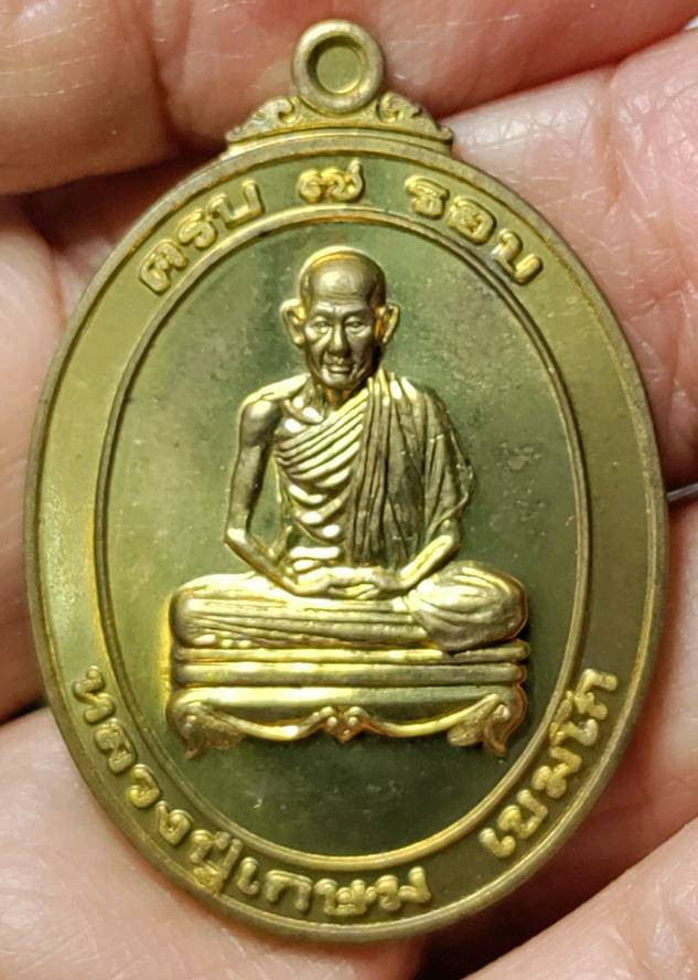 แรงต่อเนื่อง เหรียญหลวงพ่อเกษม เขมโก รุ่นนั่งพาน 3 มต. เนื้อฝาบาตร ส่งพระตามรูปนะครับ |