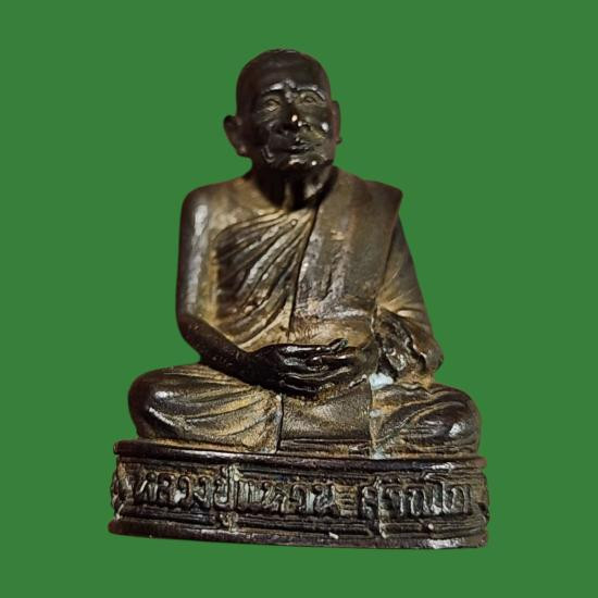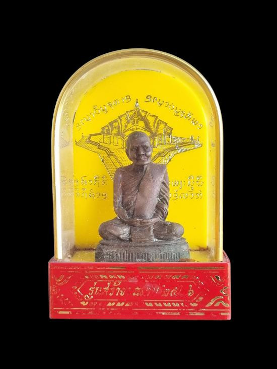 รูปหล่อจัมโบ้ ตั้งหน้ารถ ขนาด 1 นิ้ว รุ่นรวมบุญพญาวัน 84 ปี 2538 หลวงพ่อเกษม เขมโก เนื้อนวะโลหะ ก้นอุดผงและจีวร เลข 900 กล่องเดิม |